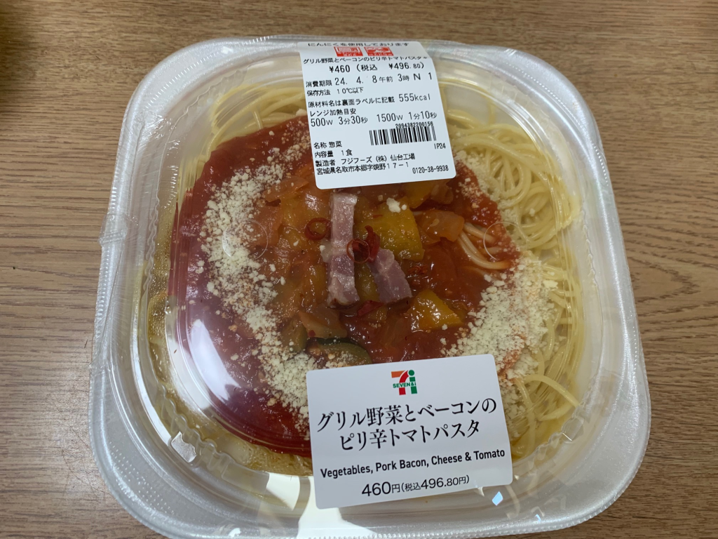 グリル野菜とベーコンのピリ辛トマトパスタ&たんぱく質が摂れるサムゲタンスープ【セブンお弁当感想】